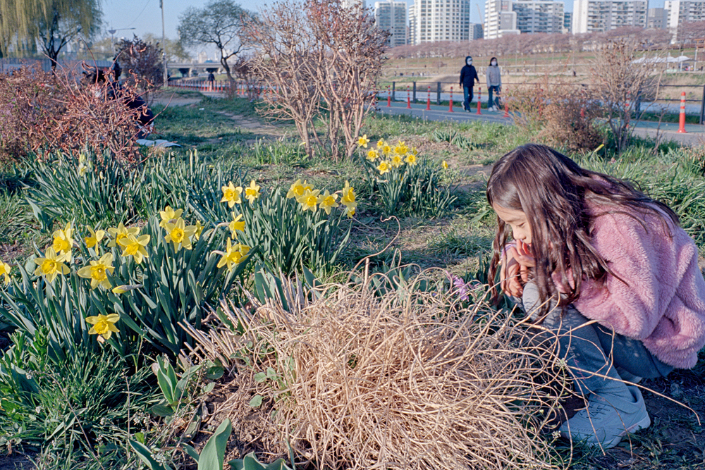 4월 초 아이와 즐겨 찾는 안양천 생태공원에서 담은 두 종류의 필름(포트라400과 엑타100) 중 마음에 드는 사진만 골라서 포스팅 해봅니다. 이번 사진들 역시 집에서 자가현상하고 스캔한 사진들입니다.