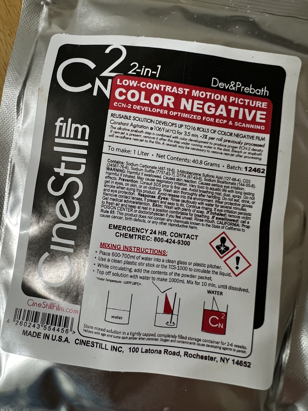 Cs2 “Cine Simplified” ECN 2-Bath Kit, for Low-Contrast Motion Picture Color Negatives For ECP & Scanning